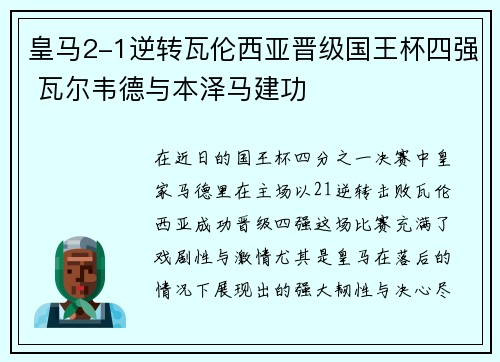 文章摘要:自瓦拉内转会曼联以来,皇马与其之间的故事引起了广泛关注。在这篇文章中,我们将深入剖析皇马决定送走瓦拉内的三大深层原因。这一决定并非简单的人员流动,背后涉及到了战术布局、球队发展战略、经济因素和瓦拉内个人情况等多方面的考量。通过对这些因素的详细分析,我们可以更清晰地理解皇马为何选择送走这位曾...